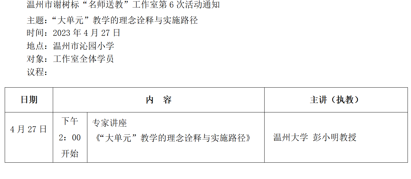 关于举行温州市谢树标“名师送教”工作室第6次活动的通知