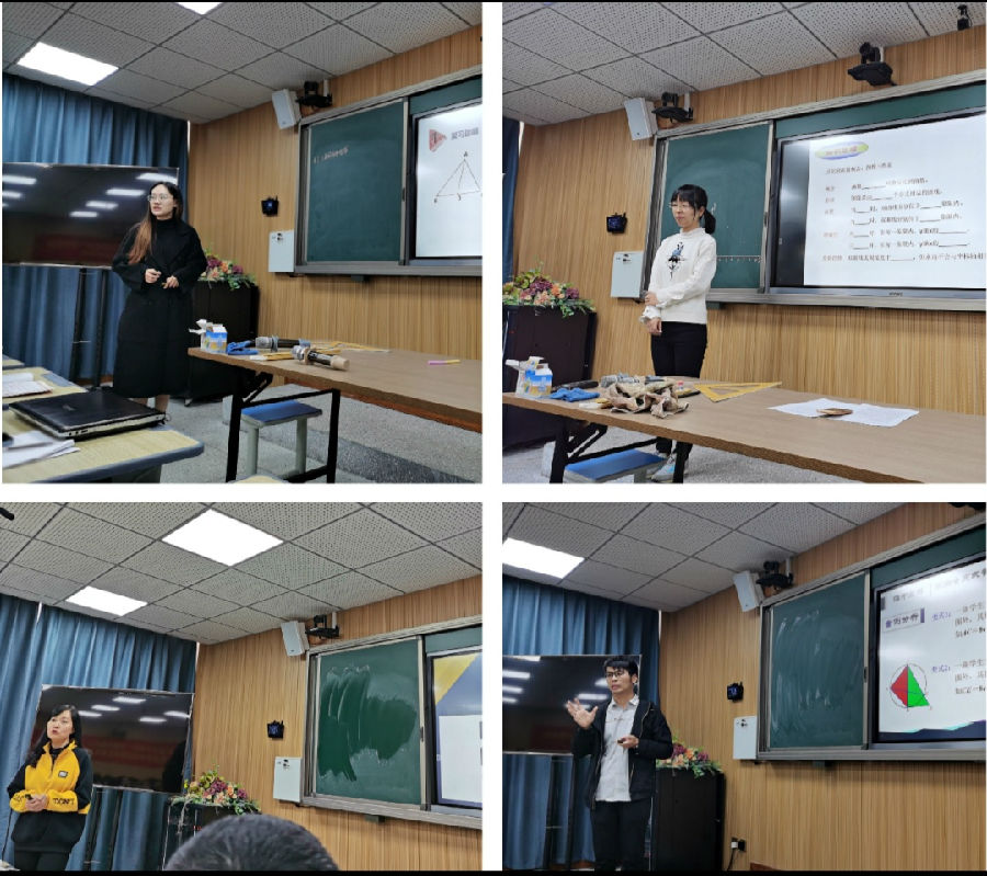 其次是试课展示,由平阳宋桥中学曹蕾老师执教《6.3反比例函数的应用》;第三个议程是说课展示,分别是温州外国语学校陈晓慧老师带来的《1.2定义与命题》,和瑞安平阳坑镇学校陈小敏老师带来的《4.5三角形的中位线》;第四个议程是观点报告,分别是平阳萧江一中张崇娜老师带来的《指向教学评一致的单元整体教学反思》,和平阳榆垟中心学校黄志老师带来的《优化试卷讲评方式,精准定教激趣启智》。两位老师结合自己的教学实际就单元整体教学和九年级的试卷讲评课设计进行了展示。