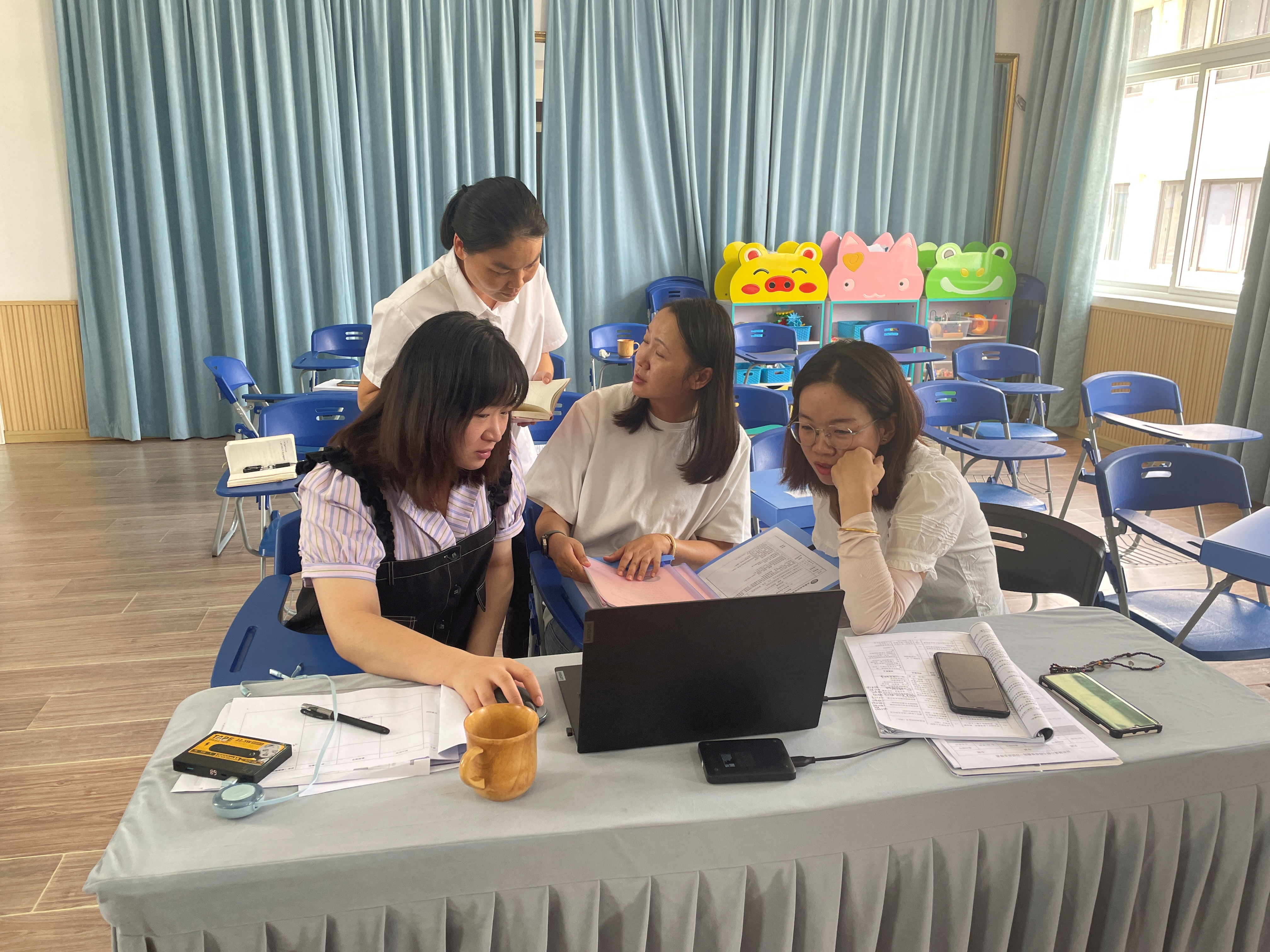 主持人及成员非常细致地对园所大环境整体从宏观到微观,从户外游戏场地到室内各功能室、走廊、午睡房......为幼儿创造有故事的环境及如何在有限的条件下充分利用环境资源提出了宝贵的意见。
