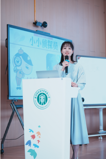 紧接着,温州市广场路小学的潘若晨老师展示了二上《雾在哪里》,潘老师围绕雾孩子说的话来设计教学活动,采用多种形式朗读,让学生在读中思考,读中感悟,扎实地进行语言文字的训练。学生还通过角色扮演、模仿说话等活动,更深入地理解和感受雾孩子的淘气。