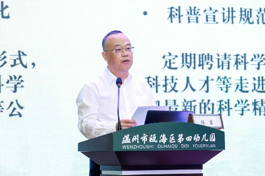 陈宏局长指出,科学教育是素质教育的重要组成部分,瓯海区积极探索科学教育的新路径,制定了五年行动规划,推进学前科学教育的“联动赋能”“扩容提质”“引强培优”和“孵化激活”四大工程,全面提升科学教育质量与影响力。在实践中,依托丰富的自然与人文资源,瓯海区构建了“户外自然实践”课程,打造了儿童友好的自然学校和科学教室,形成了独特的科学教育实践模式。未来瓯海区将继续深化科学教育改革,致力于铸就学前科创教育品牌,激发每一个幼儿的创造力,让科学教育成为孩子们成长的强大助力。