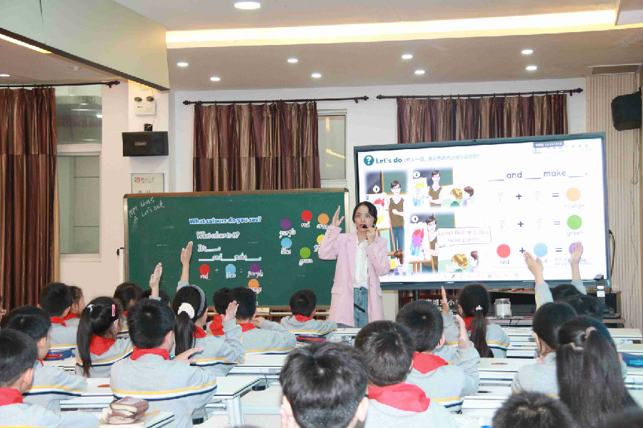 下午,活动继续开展。温州市平阳昆阳镇第七小学的徐梨梨老师和温岭市城东小学陆志财老师对PEP Book 1 Unit5 The colourful world A Let's talk进行同课异构展示。两位老师结合文本内容,巧设教学环节,进行了跨学科融合教学,帮助学生拓展学习的宽度和深度,促进教学目标的实现。