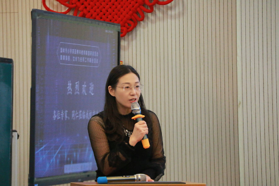 活动伊始,城东小学范卡校长致欢迎词。范校长介绍了学校教育理念、师资力量、教学效果等方面,期许英语老师能学会悦纳,不断提升。最后向与会的专家领导、教师们表达了真挚的欢迎,预祝活动圆满。
