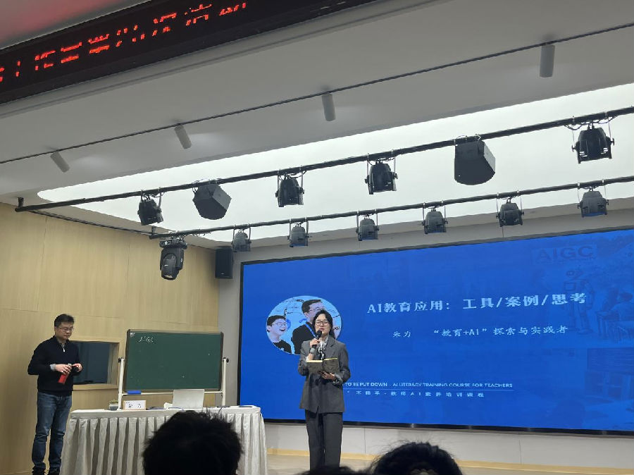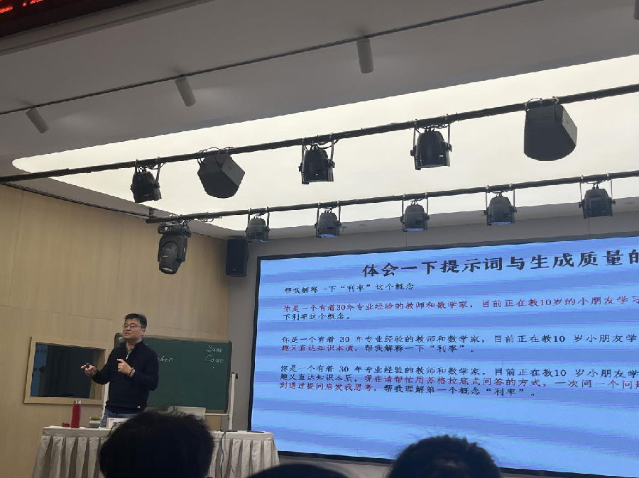 在朱力老师的带领下,老师们了解了AIGC与传统教育技术相比较的优势以及短板,旨在让老师们了解AI的优缺点,合理运用到教育中。