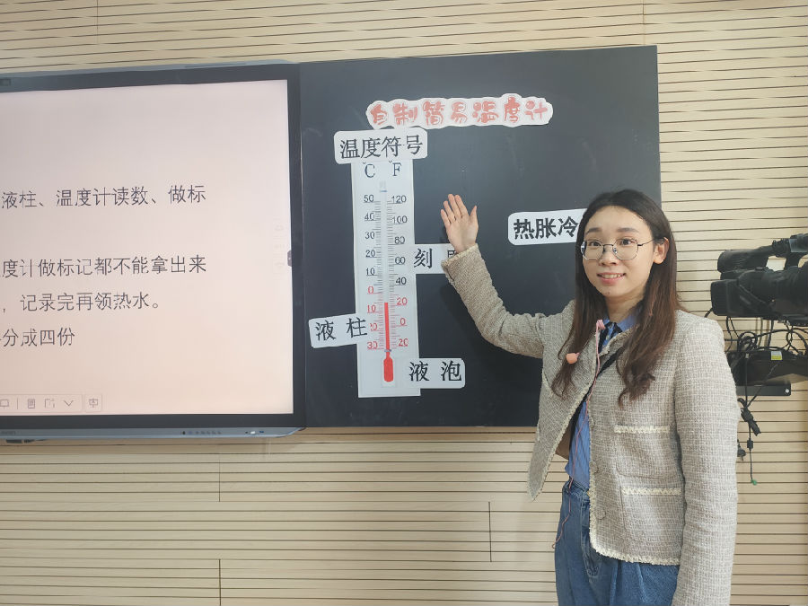 活动在孙琦琦老师带来的《做一个温度计》课堂中拉开帷幕。孙老师从生活情景引入,以小科同学泡牛奶遇水温难题激发学生兴趣。在课堂上,学生先回顾温度计的结构与作用,再明确制作任务,学生开始小组分工设计构思草图。在交流中发现关键问题:如何制定刻度展开讨论,解决问题之后开始动手组装,精心标定刻度,最终完成自制温度计。课堂中,学生进一步落实温度计的原理。在实践中体验科学的乐趣,创新能力也得到锻炼,充分展现了科学教育的魅力与活力,激发学生对科学探索的无限热情。