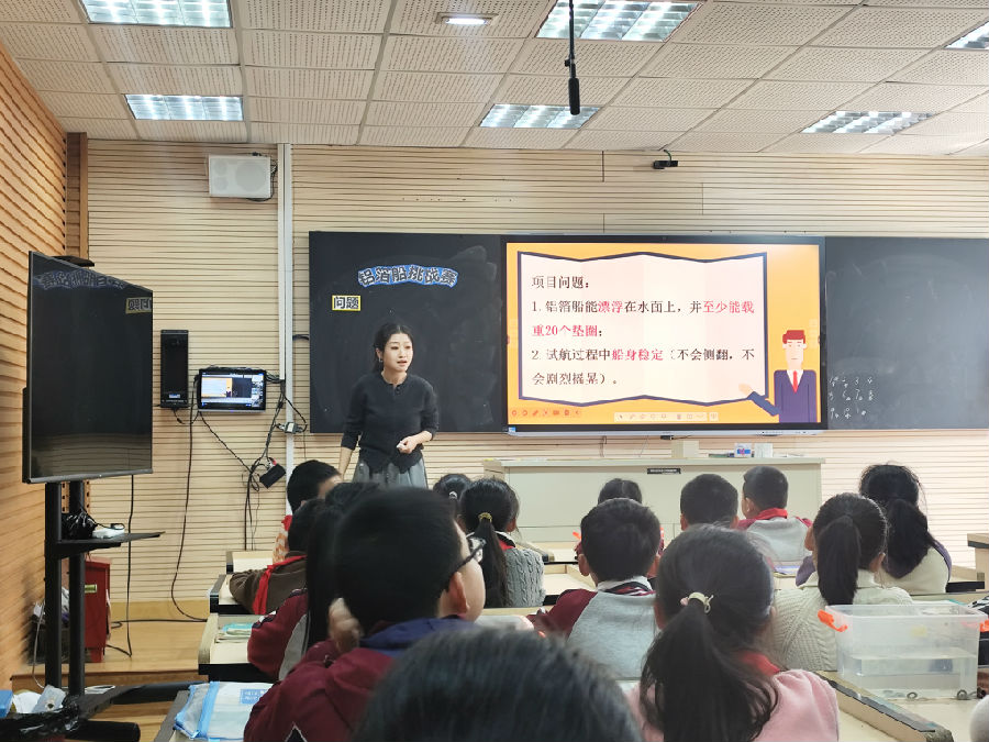 在《铝箔船挑战赛》一课中,同学们通过动手实践,像小工程师一样亲身体验了工程设计的过程,深入理解了沉的材料可以造船、船的稳定性与结构有关等科学概念。