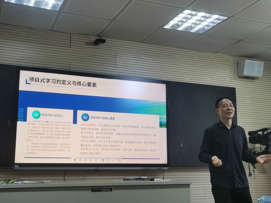 张汉老师结合课例,以《技术与工程项目式学习实施策略与实践》为题作专题讲座,强调通过真实情境驱动跨学科探究,培养解决复杂问题能力。分低、中、高段设定分层教学目标,明确角色分工。教师从“引导者”逐步过渡为“支持者”和“合作者”,通过材料清单管理、四步制作流程优化和多元评价提升效率,助力培养团队协作与创新能力。本次讲座为教师提供了项目式学习的完整实施框架,助力课堂教学从“知识传授”向“能力培养”转型。