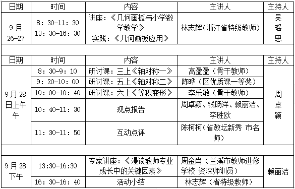 为提升教师专业素养,追寻“有学生、有数学、有技术”的数学课堂。现决定举行林志辉名师工作室几何画板助推小学数学教研展示暨送教下乡活动。具体安排如下:
