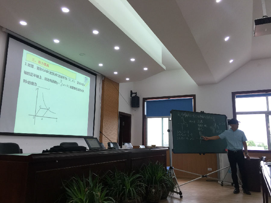 为进一步提高工作室全体教师专业水平,充分发挥名师的引领、示范和辐射作用,实现教学教研的新跨越,温州市“朱新余名师工作室”复习课专题研讨活动于2018年 6月14日下午在文成县南田中学顺利举行。参加本次研讨活动有温州市名师朱新余老师及其工作室全体成员、文成县初中数学教研员胡绍攀老师、南田中学数