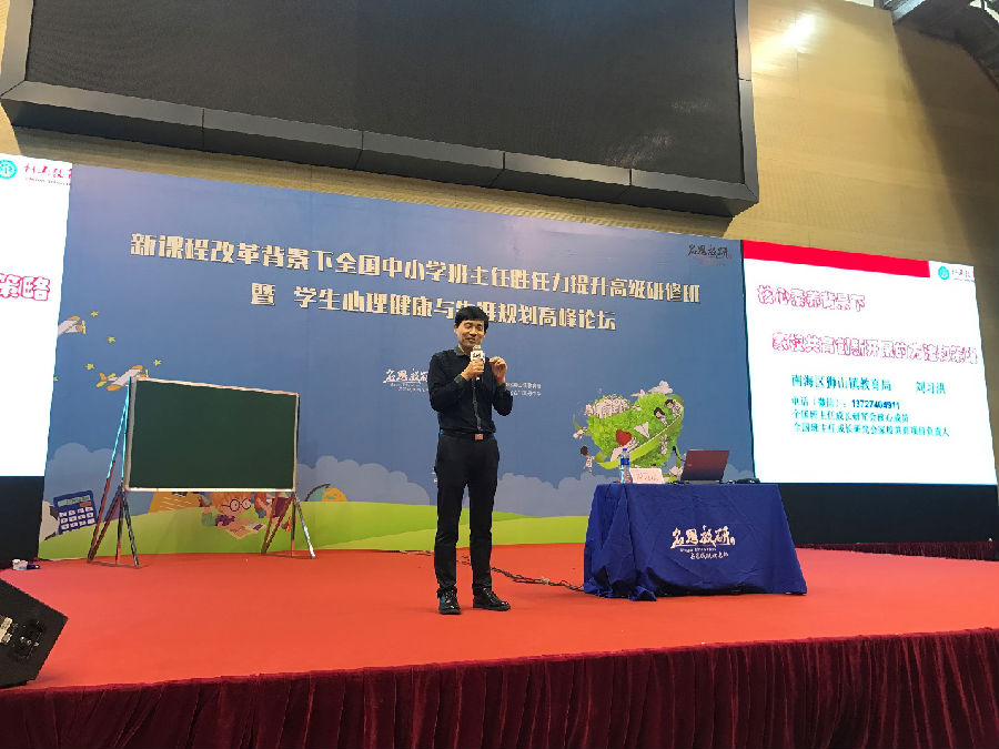 全国班主任成长研究会家校共育项目负责人佛山南海区狮山镇教育局刘习洪老师分了《核心素养背景下家校共育创新开展的方法和策略》的专题报告。讲座伊始刘老师引导老师们带着问题去思考:家校共育,到底怎么做?家校共育,我们的角色?家校共育,有什么成绩?刘老师的家长共育分为四个重要阶段:班级规划阶段;活动教育阶段;家长互育阶段;家校共读阶段。刘老认为班级规划,也就是目前比较流行的热闹“顶层设计”。在他新接一年级一年的时间里,他走过了困惑、彷徨、挣扎、思考、沉淀五个时期,最终厘清了教育思路:让每一个孩子养成一两种良好的习惯,一辈子过着优雅的“贵族”生活。
