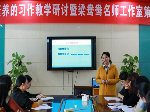 1点左右,温州市梁鸯鸯名师工作室的老师们相聚四楼小型会议室,进行了成员间的初次见面交流。梁老师布置了本学期的任务,对所有新成员寄予了厚望。下午的活动以小论坛和讲座形式开展。县实验三小林琴老师和龙港一小的郭小鸟老师带来论坛发言,为习作教学提供了新思路。