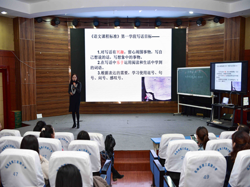 随后,鹿城区陈慧君老师带来专题讲座《读绘本 学写作 阅人生》,从《绘本读写吧》出发,以图文并茂的形式向在座老师诠释了绘本习作课程构建的全新理念。陈老师围绕“绘本成为习作教学的有效补充的原因和特点”、“哪些绘本适合作为习作的教材”、“怎样利用绘本进行习作教学”等核心问题,结合她从事绘本教学工作多个案例,为我们展示了多个绘本教学成果,有效证明了绘本可以作为习作教学的完美补充,为习作教学助力。