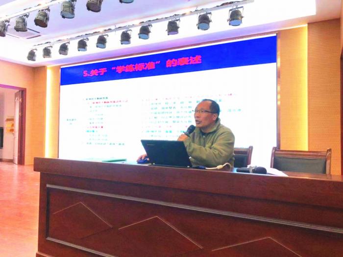 下午的活动移师报告厅举行。首先进行的是互动评课,13名新教师各抒己见,分别从教学设计、教学组织、教学评价等方面畅谈了自己的想法和疑惑,之后,温州市石峻名师工作室主持人、浙江省特级教师、正高级教师石峻老师对上午的三节展示课从“教材三个一”、“准备活动的针对性”、“体能与练习密度”等方面进行了总结性的述评,对大家提出的疑惑一一进行了解答。最后石峻老师作了题为《组合练习设计中常出现的问题与改进对策》的专题讲座,石老师从新常规新设计的要求,结合《浙江省义务教育体育与健康课程指导纲要》的精神,例举了体育课堂教学设计与教案撰写的要求,并列举了大量的课例、案例,揭示出了组合练习设计中常见的问题及改进对策,让全体与会者顿悟。
