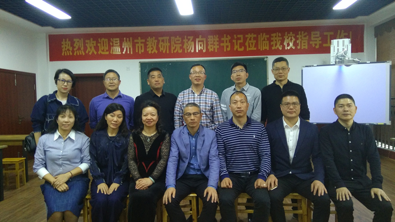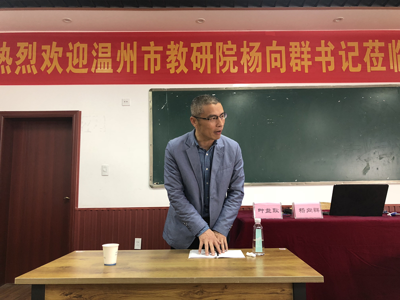 4月20日(周末),温州市叶益耿名校长工作室第七次活动在乐清市柳市镇实验中学举行。此次活动以“学校需要怎样的教学新常规”为主题,联合乐清市陈永海名校长工作室共同举行。此次活动的主要内容有五项:一是参观柳市镇实验中学校园文化、功能室建设;二是柳市实验中学林元朝校长作题为《聚名师,破难题,出新招,创新常规——助推学校新常规改革再出发》的汇报;三是温州市名校长叶益耿作《夯实常规,优化机制,深化课改,彰显教学特色品牌》的专题讲座;四是工作室成员进智慧教室听课,了解柳市实验中学教学常规情况;五是邀请温州市教育教学研究院杨向群书记作《基于核心素养下的教学常规再出发》的专题讲座。