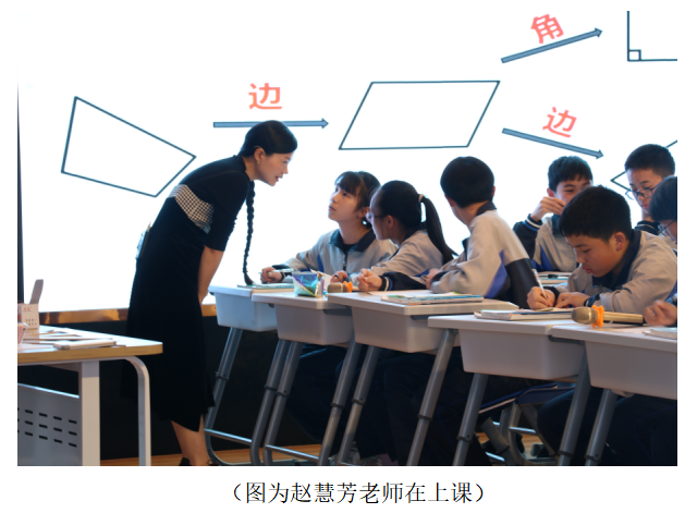 首先,年轻、漂亮而又具实力的赵慧芳老师以“概念课”——八下《5.3正方形(1)》拉开了这次活动的序幕,她通过一般三角形的边、角特殊化得到特殊三角形,引导学生类比整理了一般四边形到特殊四边形的研究方法,从而开启了正方形的教学,在这个过程中,赵老师特别关注新旧知识的衔接,也关注课堂生成资源的捕捉、反馈和评价,本节课从正方形概念到判定的得出,赵老师始终从学生练习中间找素材,通过师生互动的形式让学生说,让学生发现矛盾又自己解决矛盾,从而巩固新知,而变式题组的练习则为学生很好的提供了知识运用的平台,注意一题多解、多题一法。一堂课下来,赵老师以清晰的思路、干脆利落的表达马上吸引了我们听众的心。