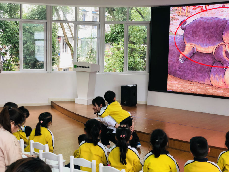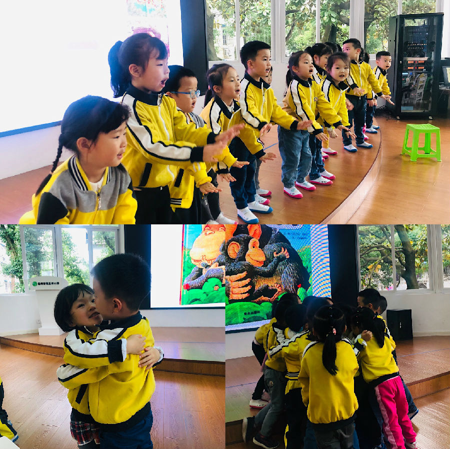 冯秋文老师把表达爱意的《抱抱》活动呈现在孩子面前,引导孩子观察森林中小动物和妈妈抱抱的动作,然后同伴之间仿动物间亲密的拥抱,去感受爱、表达爱;