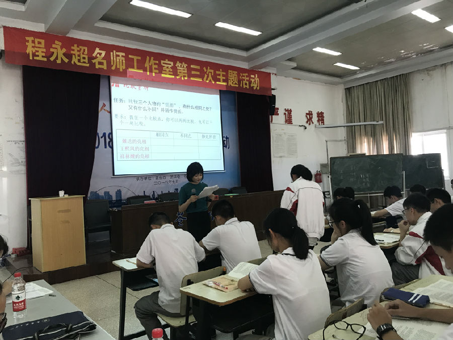接下来,苍南中学的陈燕燕老师,在教材改版的大背景下,执教了一节《群文阅读》课。课程以《林黛玉进贾府》《祝福》《边城(节选)》为文本对象,存异求同。有针对性且有效地进行群文阅读的指导。陈燕燕老师教态自然,教学风格风趣幽默,课程切入点新颖独到。无论是学生还是听课老师,都被她的课堂风范吸引,享受其中。