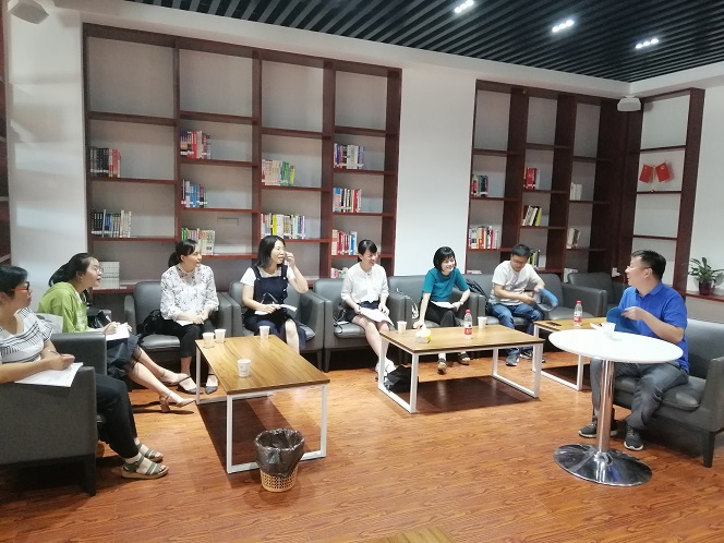 中午短暂的休息后,一行人相聚在温馨的教师书吧。针对上午的两堂课,每一位与会老师都结合自己的听课感受,或给予充分的肯定,或提出中肯的建议。程永超老师不仅结合当下教育背景和前沿的教育理论,还结合了两堂课的实际操作和教学效果给出了评价以及具体的实施建议。不仅两位授课老师受益匪浅,其他成员也收获满满。