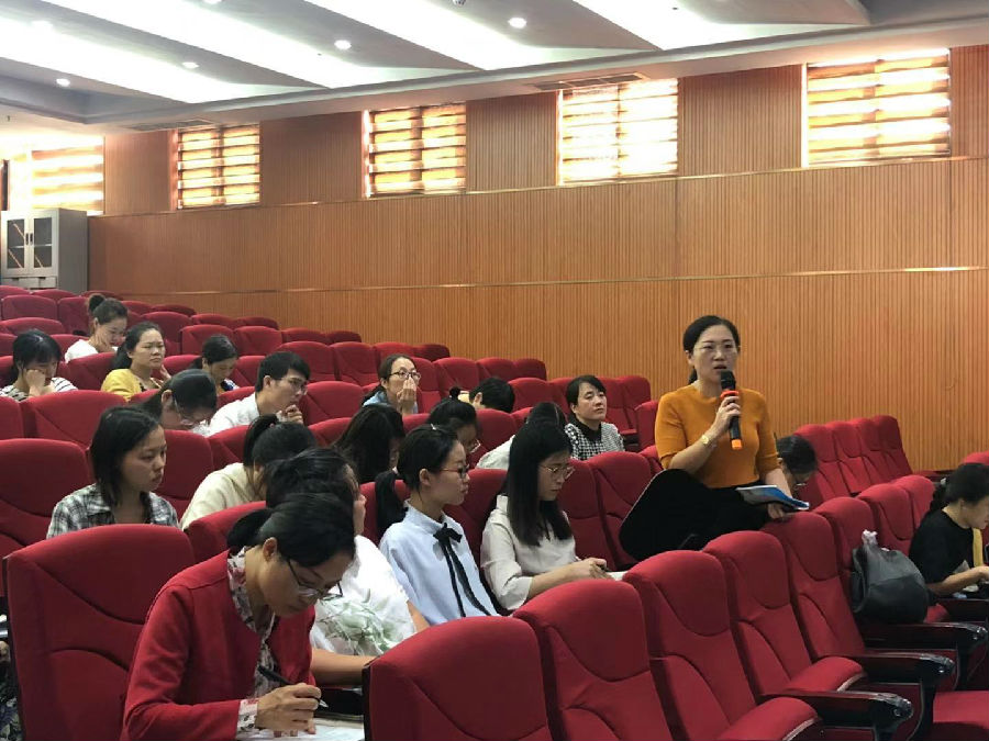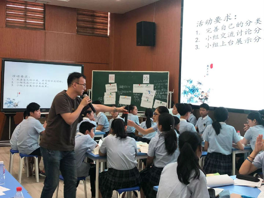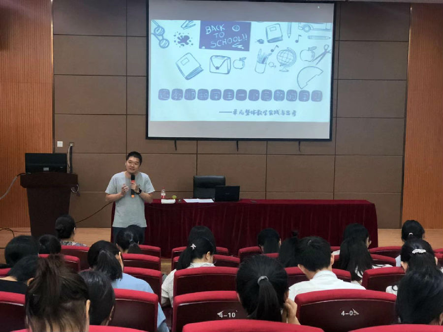 除此之外,陈老师展示了山东德州、上海等不同地区的语文学科单元整体教学设计要素,通过比对温馨提醒了每一位老师在单元整体教学设计中不要忘却了单元作业这一要素,在设计时一定要与单元目标相契合。在学科组备课时,可以通过选择重组整合、打通整合或者关联整合,反复精确单元目标以及分课时目标,统筹单元作业的层次步骤。陈老师幽默灵动,讲座期间与老师们频频互动,就单元整体设计话题多次碰撞出绚丽的火花。
