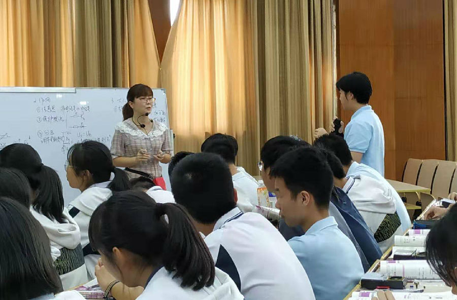 第二日,活动继续。先由塘下中学的缪阿调老师作为“东道主”给我们上了一节《电子元器件——电阻》的复习课。缪老师语言亲和不失严谨,课堂内容充实又条理清晰,得到了与会老师的好评。余露丹老师带来一堂《三极管复习》课。余老师的课知识点详尽细致,注重对学生解题方法和思路的梳理,激起了在场老师的热烈讨论。
