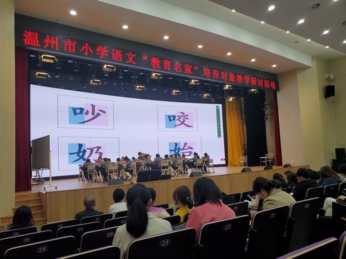 第一堂研讨课由温州道尔顿小学的林楚楚老师执教二年级课文《狐狸分奶酪》。林老师首先带领小朋友走进童话世界,在轻松自由的朗读中自主识字,理解词语,利用词语简述故事内容。接着,林老师紧紧抓住本课的语文要素——借助提示语分角色朗读对话,为学习复述课文做铺垫。写字环节,林老师让小朋友通过观察、临摹、评价、修正,感受汉字的书写规律,在实践中有效地落实了写字目标。