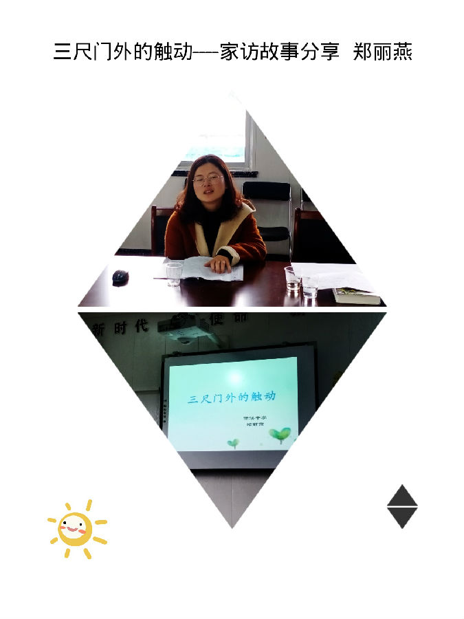 下午,珊溪中学郑丽燕老师分享了她因为一堂留守儿童主题班会课而去家访的故事:《三尺门外的触动》。在她与三位特殊学生的家访历程中,见证了学生的学习与生活的转变,我们被郑老师对学生的爱深深触动,并感叹家访是了解学生、理解学生、改变学生的金钥匙。