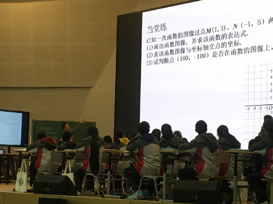 温州市500余位初中数学老师参加了此次论坛交流活动,本场活动以“核心问题引领下的学习活动设计”为主题,乐清市初中数学教研员特级正高教师吴立建老师、温州大学附属茶山实验中学李胜国老师和南浦实验中学林超老师分别为大家带来了“以学生为中心”、“问题教学”等精彩的数学教学公开课。其中徐丹阳名师工作室学员林超老师的一次函数图像课的突出优点:如课堂教学充分关注课本教材内容的欠缺:关于什么是函数图像的理解,特意增加通俗易懂而又有趣简单的实例。