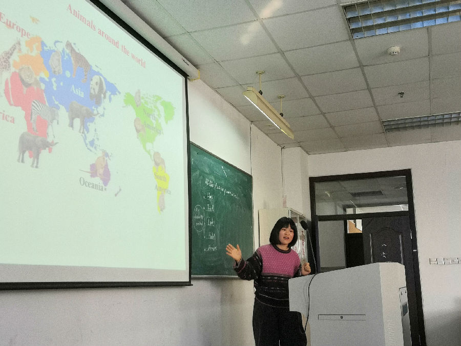 下午,宋梦莹、麻文婕和朱成娇老师则围绕NSE 7A Module6 “A trip to the zoo”开展试课。首先是宋梦莹老师展示了本模块的听说课。宋老师以视频引入动物话题,进行词汇与句型的教学,然后充分处理了本单元的听力内容,注重对突出句式语音的模仿操练,将三单的不同句式作为教学重点,为阅读、写作课打基础。