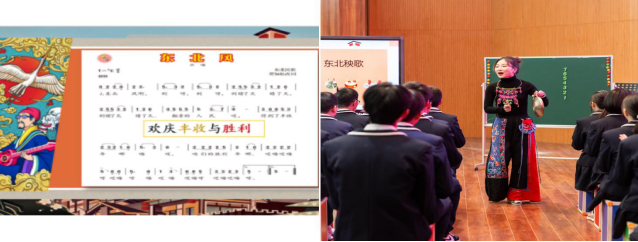 瓯海的《黑土传情》更是惊艳了线上线下的上万教师,教师在导入部分采用合奏教学,快速热身、拉近师生距离,直观体验东北的“热情奔放”了解东北的“铁汉柔情”。随后陈老师引导学生通过“载浮载沉学唱嫁令阔”、“律动和歌唱伊玛堪”“多腔合作合唱赫哲歌”三个环节的再现赫哲族人在青山秀水之间,幸福地生产生活之景象。尤为巧妙的是从课前就埋下一条色彩暗线连接首尾,帮助学生理解东北的“黑”,原来是多彩的沉淀,是多元文化的融合,激发学生热爱祖国灿烂文化的感情。