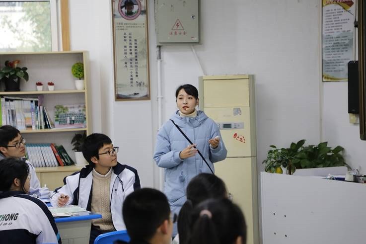 最后一个环节班会课观摩。首先由来自乐清中学的林璐璐老师给我们带来了第一节观摩课。林老师教态自然,自信大方,在进行《杜绝假学习》教学活动中稳扎稳打。林老师先与学生一起玩了一个小游戏“一心二用”,让学生心无旁骛的数一遍试卷数量,再让学生边回答自己问题边数试卷,结果第二次不仅数错了还比第一次用时更长,由此引出了她今天的课题。激发学生的背景知识、调动学生情感,带领学生在趣味中走进了本课的课堂学习。在此过程中,学生的输入和输出得到统一,师生互动活跃并达到了预期效果。
