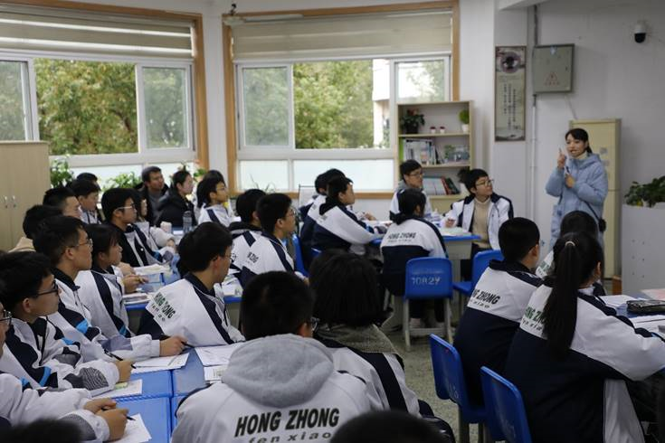之后,虹桥中学的倪彬颖老师为学生们呈现了主题为《“心”朋友攻略》的班会。课堂中,倪老师扎实的基本功,清晰的课堂指令,自信又不失亲和力的笑容让人如沐春风。为了拉近与学生的距离,倪老师在课前与学生们一起游戏热场,小组改编‘分班后,知心朋友’的对话。在延伸游戏中关注学生情感和思维品质的培养,充分挖掘学生的思想观点,通过一个个极具思维含量的问题使学生从中深刻地领悟到这节课的精髓,完美地完成了教学目标。