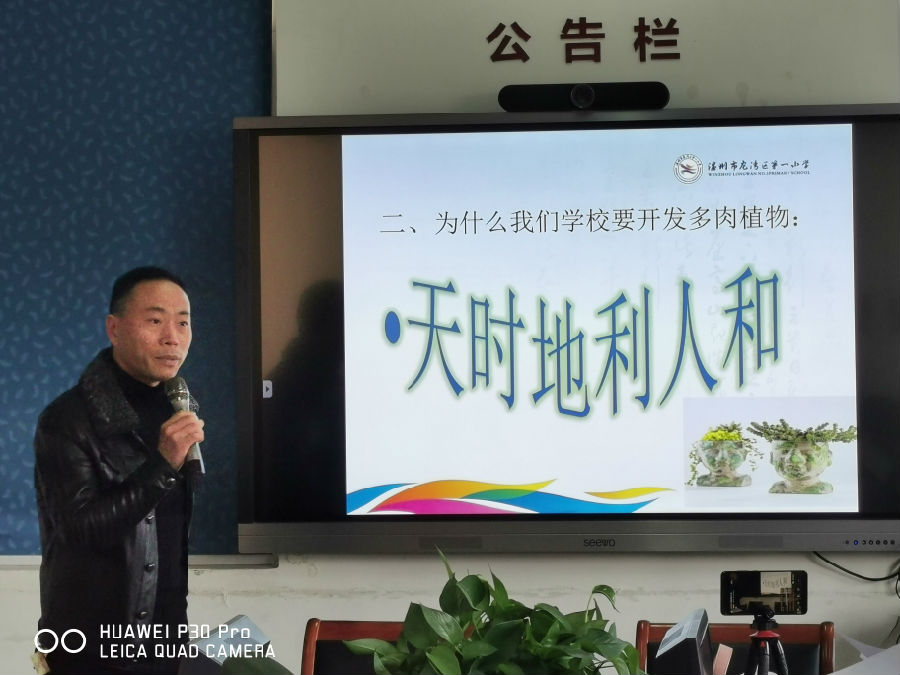 龙湾区第一小学教育集团孙旭龙副校长做《多肉校本课程开发与探索》主题分享,他从“天时、地利、人和”三方面分享了“什么是多肉植物?”“为什么开发多肉植物课程?”“如何开展多肉植物课程?”交流学校校本课程建设的探索与实践,孙校长幽默风趣的话语不时赢得学员阵阵笑声,引发与会学员共鸣。