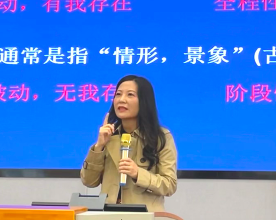 温州中学教授级教师杨振华老师给我们带来了《基于“情境—问题”教学设计的说课策略》。他给我们梳理了说课的基本顺序,并在每一个环节给出建议,全程干货满满。他指出,对教材要有自己处理,对学生的学情要有深刻的把握,在此基础上,不同学校的重难点是不同的,老师们应当找到知识的延伸点和能力的提升点。在现有的核心素养观下,应当将教学目标转换为学习目标,以学生为主体,从思考怎么教变成怎么学。整个说课中的重心应当落在说过程上,杨老师给大家展示了一些优秀案例,内容丰富、指导性强。在板书环节,杨老师提出要突出重点、简洁、清晰。杨老师的讲座全程高能,听得老师们频频点头,受益匪浅。