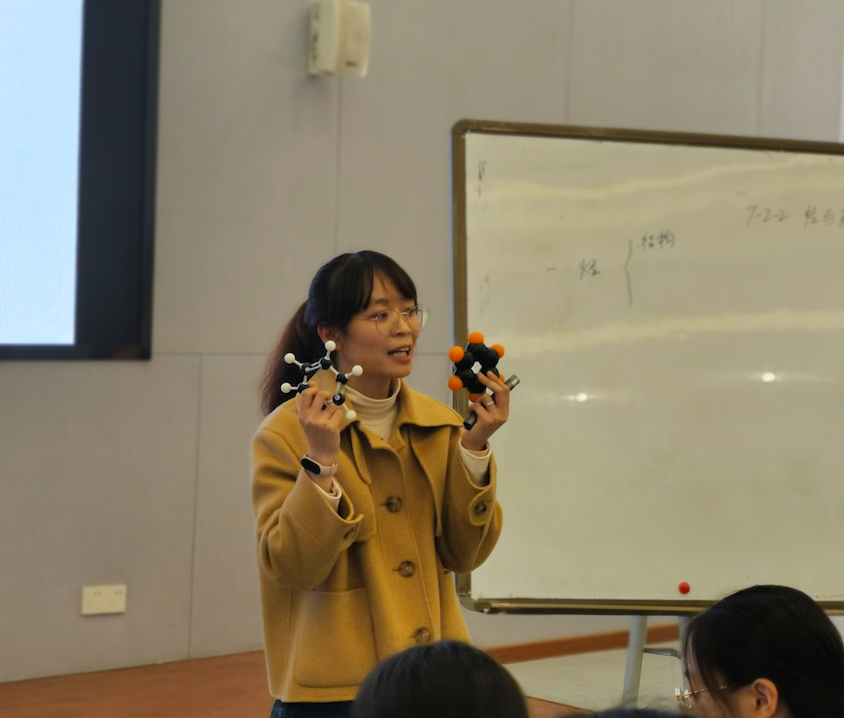 下午,由学员温州市人文高级中学吕知索老师和学员温州市第八高级中学庄园老师带来了《乙烯与有机高分子材料》单元的两节公开课,课题分别为《乙烯》和《有机高分子材料》。吕知索老师从生活中的乙烯切入,现场制备乙烯并观察乙烯。同学们对比搭建的乙烷和乙烯的球棍模型猜测并验证乙烯的性质,将课堂交给学生,让学生在自主探究中发现并解决问题,并通过一系列互动加深同学们的印象。最后回归生活中的乙烯,作为石油工业的产品,要珍惜资源。这节课培养了学生学习有机化学的基本方法——结构决定性质,并发展了学生的科学精神和社会责任。