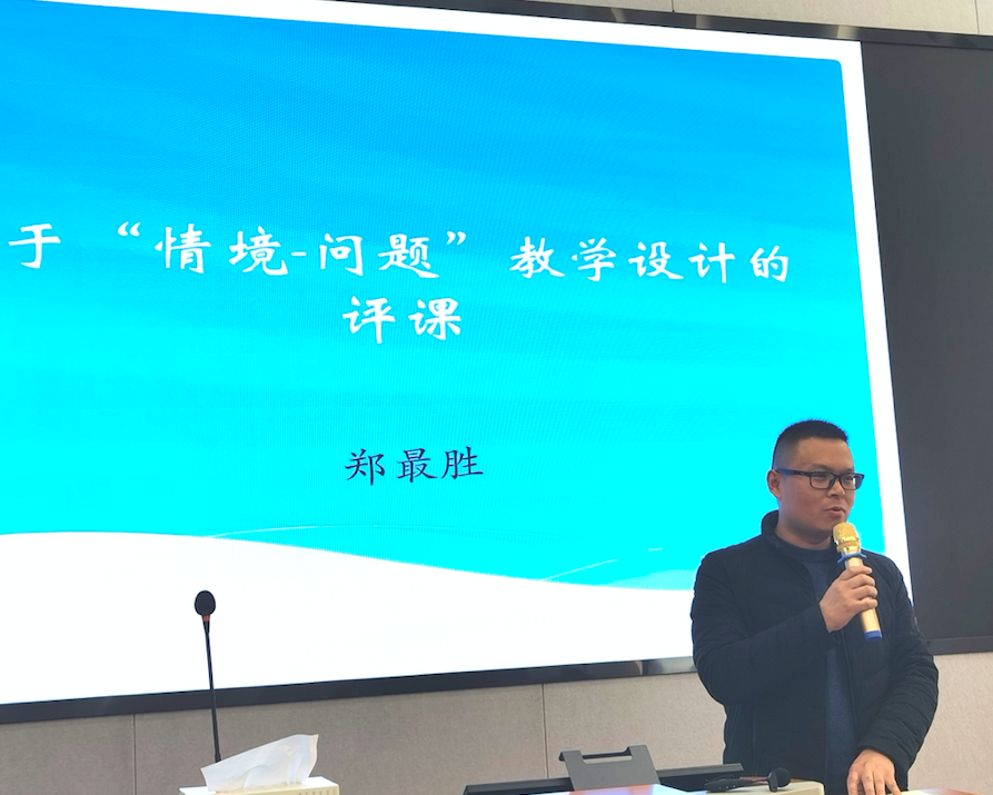 接着,温州人文高中的郑最胜老师带来了《基于“情境—问题”教学设计的评课》。郑生动地把一节课比作剧本,那么教师就是导演,学生就是演员,教师能发挥主观能动性创造一个好的剧本。郑老师对两节课都给予了高度评价,他梳理了吕知索老师整节课的情境线与问题线,评价整节课逻辑清晰,情境与问题处理得当。庄园老师以防疫物品为情境,从原料到产品再到回收与利用,每个任务下的问题层层递进,启发学生思维、提高学生认知。郑老师再谈问题的层次性以及情境和问题的融合性,再对乙烯和溴水的反应进行了深入探讨。最后回归到“情境—问题”的如何实现双轮驱动,让人收获颇丰。