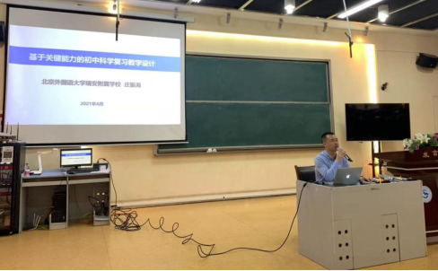 第二环节浙江省特级教师庄振海老师做了《基于关键能力的初中科学复习教学设计》讲座。庄振海老师结合中考试题深入浅出地讲解:如何通过试题考查学生的关键能力,并结合课例说明如何在科学复习教学中发展学生的关键能力。
