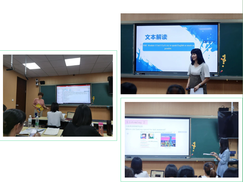 为了更有效地促进英语听说教学的发展,深入解读听说课文本,工作室成员们在杨老师的组织带领下开展文本解读和说课活动,并有幸得到李冬梅老师的点评和指导。本次活动分三组进行,每组都有两个阶段,第一阶段由两位老师作为小组代表,对自己负责的模块进行文本解读和说课,第二阶段由李老师进行点评。