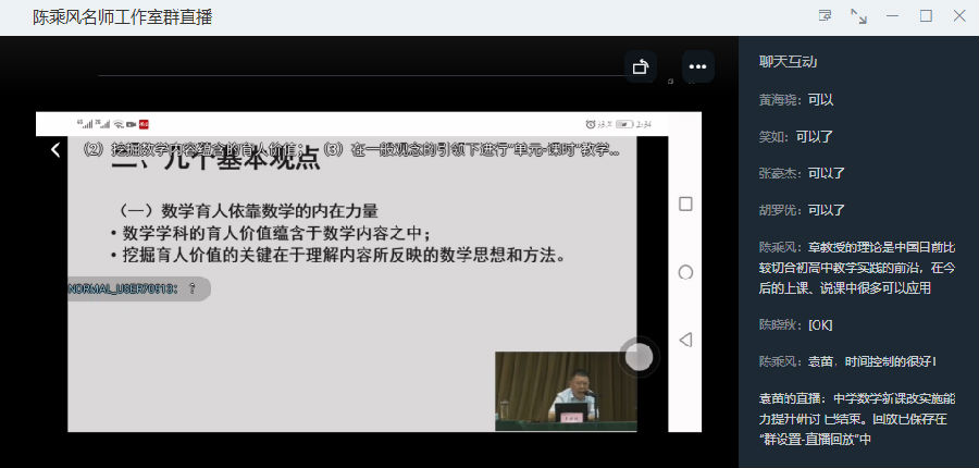 为进一步研讨如何提升新课改实施能力,切实提高工作室成员的专业水平和数学育人能力,2021年10月9日,陈乘风工作室全体成员参加钉钉线上培训活动,聆听章建跃博士对新课改的见解与建议。