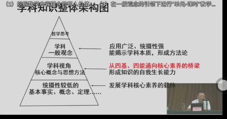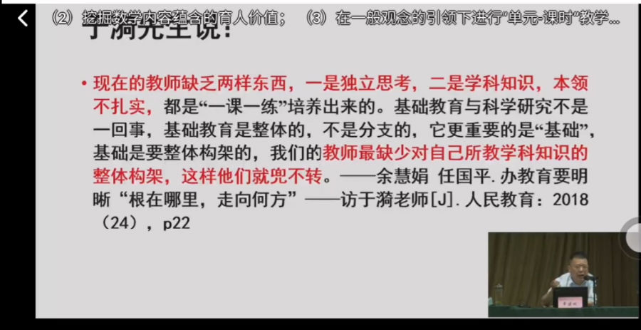 紧接着,章博士引用于漪老师的话强调理解学科的重要性,单元教学设计要在理解数学整体构架的基础上进行。