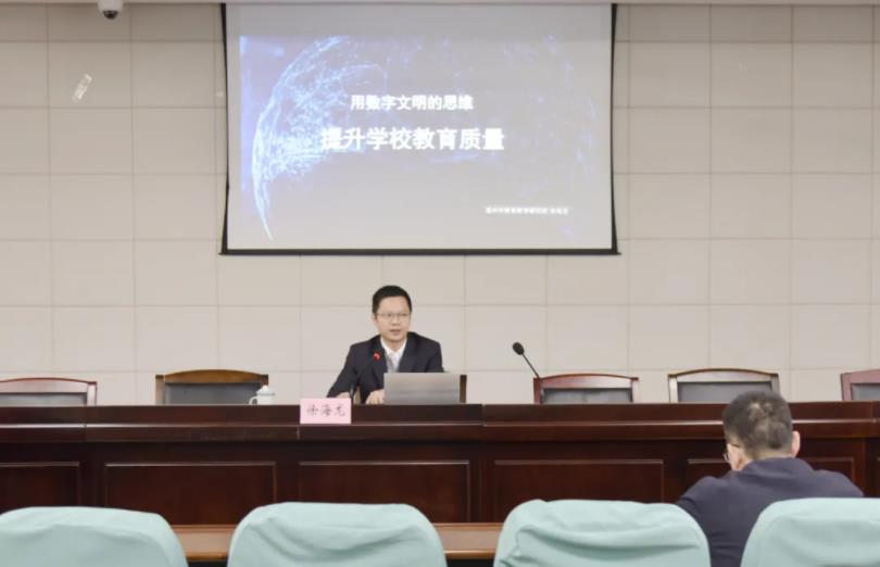 首次活动中,全体学员认真听取温州市教育教学研究院徐海龙院长的讲座《用数字文明思维提升学校教育质量》。讲座从文明形态演进高度,指出数字文明的特点,分析数字文明对教育方式与理念的影响,主张以与时俱进的姿态,积极适应新形势,探究人工智能和大数据融入教育的路径。讲座具有极高前瞻性、实用性、启发性,对全面提升学校教育质量有重要价值。