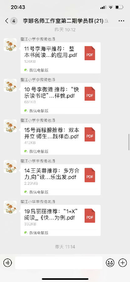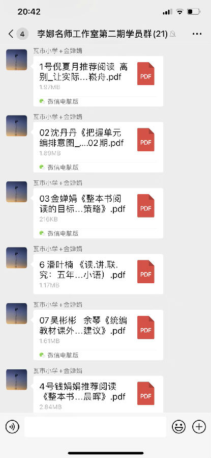 2月27日早上8:30,工作室微信群里不断传来各位成员精心挑选推荐的关于“快乐读书吧”教学的理论、案例、课题等多种类型的高质量文章。晨间学习开始了,大家汲取名家之作中的经验,化为自身教学实践的垫脚石。