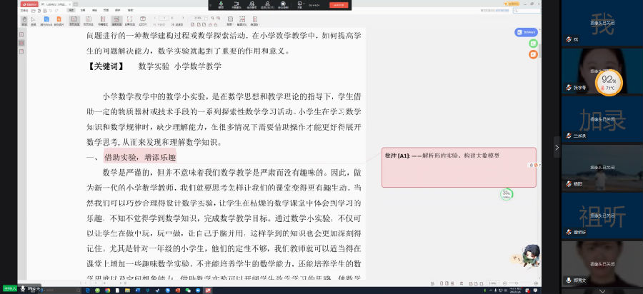 对于正文中的小标题部分,韩老师表示同样要体现以上三要素。例如,学员实例论文中的小标题“借助实验,增添乐趣”,经过韩老师的文本解读后呈现为“解码型的实验,构建大数模型”,从中我们不难理解“先分解再成构”的数学本质。