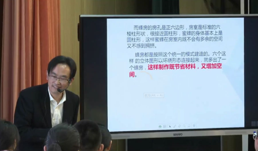 富阳区永兴学校初中部段春炳老师执教八年级《蜂巢中的数学奥秘》。本堂课中,热身活动将关于蜂巢的一系列问题抛出,各个小组根据任务在前期进行了组内研讨,再由小组代表进行汇报展示。整堂课打造了“项目为主线、教师为引导、学生为主体”的新型教学模式,发展了学生发现问题的能力、深度学习的能力、解决实际问题的能力以及成果共享的能力。