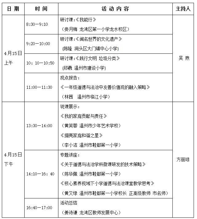 1.现场观摩:龙湾区小学道德与法治教研员工作室和王小凤名师工作室