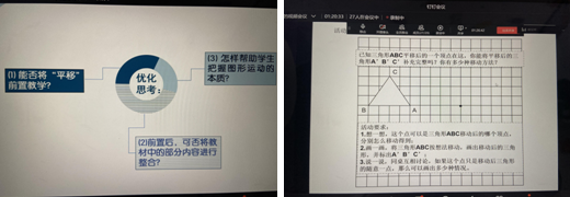 潘超瑞老师分享的主题是《经验促成整体构建 想象发展空间观念——图形的运动(二)为例》。潘老师由一题引发整合思考,设计了三个不同类型且丰富的活动帮助学生更明确图形的运动过程及本质,重视培养学生的动手操作能力,从而促进空间观念的形成。