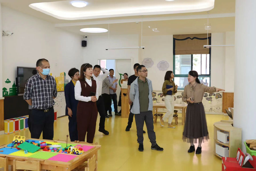 工作室学员在金海湖幼儿园园长朱慧静的带领下,参观了园所文化、户外场所以及特色场馆。金海湖幼儿园围绕办园理念“看见孩子,遇见未来”呈现的“一厅三廊六馆”,立足儿童视角,捕捉儿童兴趣,围绕儿童的发展打造特色场馆,使园本课程融入幼儿园环境的每个角落,让课程成为一种活动常态,工作室学员对幼儿园基于儿童发展的场馆设置理念赞叹不已。