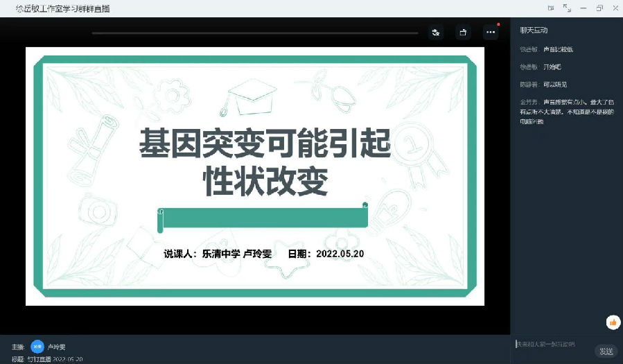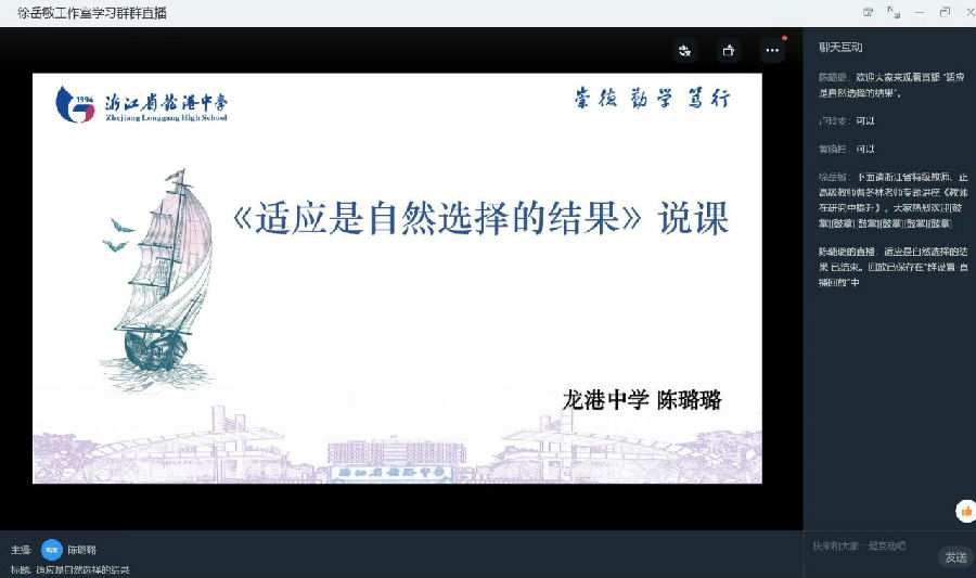 环节一是两位工作室成员重点围绕教材学情分析、教学目标、教法学法、教学过程,分别进行说课展示。乐清中学卢玲雯老师在《基因突变可能引起性状改变(第一课时)》中创设多个情景和问题,围绕基因突变的机理和特点开展教学。利用小组合作完成探究基因突变对蛋白质影响的活动突破教学难点。龙港中学陈璐璐老师在《适应是自然选择的结果》教学中以蒙古马为课堂贯穿点,以问题式教学和讲授式教学结合,帮助学生掌握进化的过程,逻辑清晰,层次分明。两位老师的教学设计思路都很新颖,体现新课程理念。