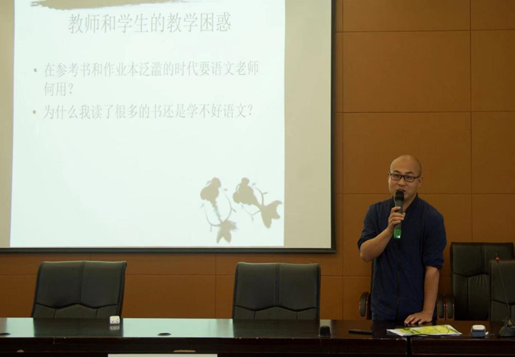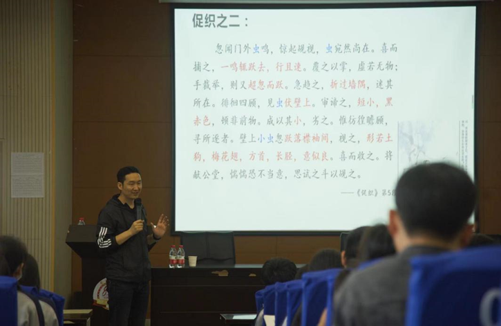 在下午的讲座中,跟随陈智峰老师学习了15年“主问题·关键词阅读课型”教学的工作室学员陈伯安老师在《小说文本解读的内涵与外拓》的讲座中, 回顾了该课型研究的过程和取得的成绩,分享了两点心得——问题设计要简洁开放、文本解读要深入细致;随后结合《林教头风雪山神庙》和《复活》两个课例,分享了基于主问题·关键词教学的文本解读在內延与外拓上的具体操作。
