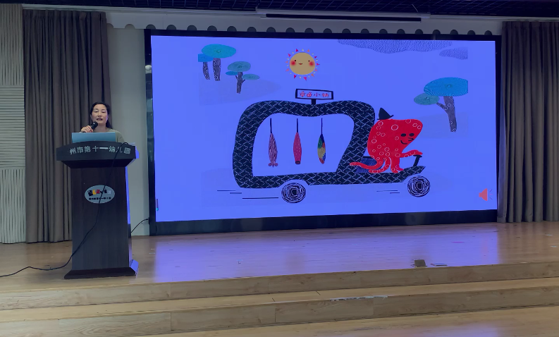 接着是温十一幼王淑君老师为大家带来的中班语言活动《章鱼先生卖雨伞》。活动中幼儿通过对各种动物形象特征的细节观察,为其匹配合适的雨伞,在卖伞游戏中进行大胆的表达,体验游戏带来的快乐。随后,来自乐清中心幼儿园的赖亦芬老师从“儿童经验与指南精神的契合”、“语言发展目标与儿童经验的契合”、“语言教学与高阶智慧的运用”、“儿童能力与发散思维的发展”等方面,对本次活动进行了点评。