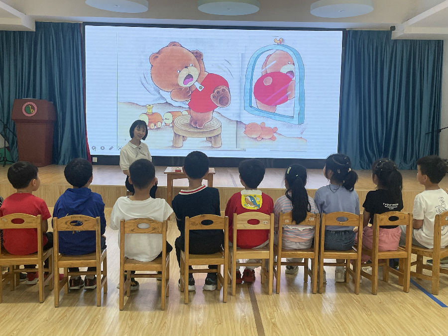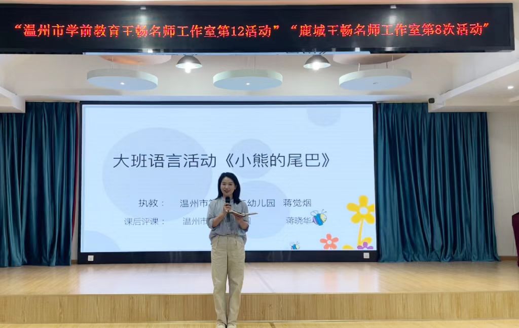 第四个活动大班语言《小熊的尾巴》,由温二十二幼的蒋觉烟老师执教。该活动以小熊的心理过程为主要线索,引导幼儿通过观察和已有经验来表述动物尾巴的不同特征,并在辩论游戏中进一步表达自己的想法和观点,萌发接纳自己、喜欢自己的情感。活动之后,温八幼的蒋晓华老师就“如何恰当运用教学策略达成活动目标”进行了有效点评。